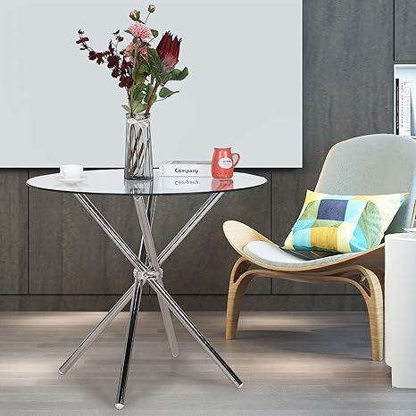 Jaelynn dining table this solid, stainless steel dining table sports a 59 w round glass top that complements any contemporary space.